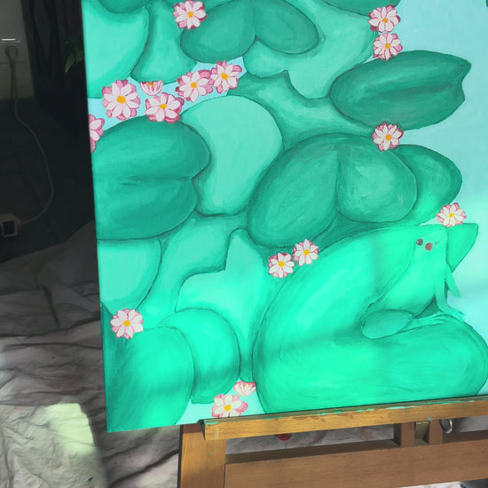 The Love Story Of Frogs, est née dans un rêve. Au milieu de la nuit ces grenouilles sont apparues. Heureuses, gaies, insouciantes. Utopie d'une nature insouciante et d'un monde digne d'un dessin animé.